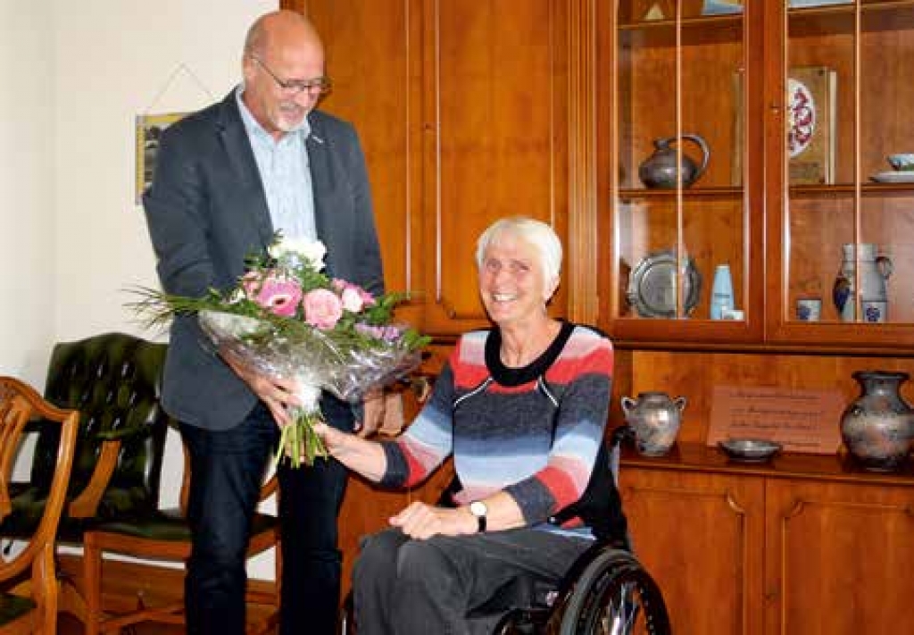 Ueckermünde. Gemeinsam mit ihrem Mann Jörg feierte die neunfache Olympiasiegerin und Ehrenbürgerin der Stadt Ueckermünde am 26. Mai ihren Geburtstag in ihrer alten Heimat. Eine Station an diesem Tag ist ein Besuch bei Bürgermeister Jürgen Kliewe, der mit einem großen Blumenstrauß die Grüße der Stadt zum Geburtstag überbrachte. Stolz zeigt die Jubilarin während des Treffens die Bilder ihres ersten Segelturns vor einigen Jahren. Es war ein ganz besonderes Erlebnis. Als Schirmherrin des Rolliseglers und als Ehrenbürgerin der Stadt ist sie ihrer Heimat immer noch sehr verbunden und besucht diese regelmäßig. Die Stimmung ist vertraut und wenn die „Grand Dame“ des Behindertensportes von ihrer sportlichen Laufbahn redet, leuchten ihre Augen. Aber nicht nur dann, mit viel Engagement setzt sich das Ehepaar Buggenhagen für die Belange der Behinderten ein und auch hier wird der Gesprächspartner sofort von ihrem Enthusiasmus angesteckt. Besonders wichtig sind Marianne Buggenhagen die Special Olympic World Games in Berlin im Jahr 2023. Dann treten 7.000 Athleten mit geistiger Behinderung aus 180 Nationen in 25 Sportarten gegeneinander an. Ihr großes Ziel ist es, den Sportlern aus Barnim, der neuen Heimat der Buggenhagens, die Teilnahme an den Weltspielen zu ermöglichen. Dafür wurde in den vergangenen zwei Jahren viel Netzwerkarbeit geleistet. Es mussten Vereine gefunden werden, die Trainingsangebote zur Verfügung stellen und es musste die Logistik für behinderte Sportler aufgebaut werden. Die Buggenhagens haben es geschafft und die Grundlage für die Teilnahme an den Special Olympics ist da. Jedoch hat der Corona-Virus auch hier nicht halt gemacht. Spenden-gelder fehlen an allen Ecken und Enden und Sportveranstaltungen fallen aus. Deshalb hat das Team der Special Olympics zu einem virtuellen Spendenlauf aufgerufen. Jeder kann mitmachen und sich seine Laufnummer und Urkunde unter https://projekte.specialolympics.de/spendenlauf-2020/ downloaden. Vielleicht wird ja auch noch ein unentdecktes sportliches Talent aus Ueckermünde und Umgebung gefunden. Das Gespräch neigt sich dem Ende zu. Es stehen noch mehrere Stationen auf dem Tagesprogramm. Unter anderem ein gemeinsames Essen in einem der wenigen Restaurants Ueckermündes, die für Rollstuhlfahrer geeignet sind. Das sei tatsächlich immer noch ein großes Problem, sagt Marianne Buggenhagen. Wir müssen jeden Ausflug sehr genau vorausplanen, um nicht vor unüberwindbaren Treppenstufen oder unmöglich zu durchfahrenden Toilettentüren zu stehen. Wir sind sehr gern hier und möchten gern noch viel mehr sehen und erleben, sagt die gebürtige Ueckermünderin und freut sich auf den nächsten Ausflug auf dem Wasser