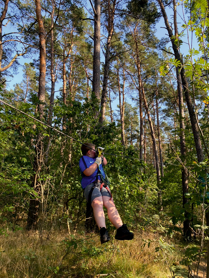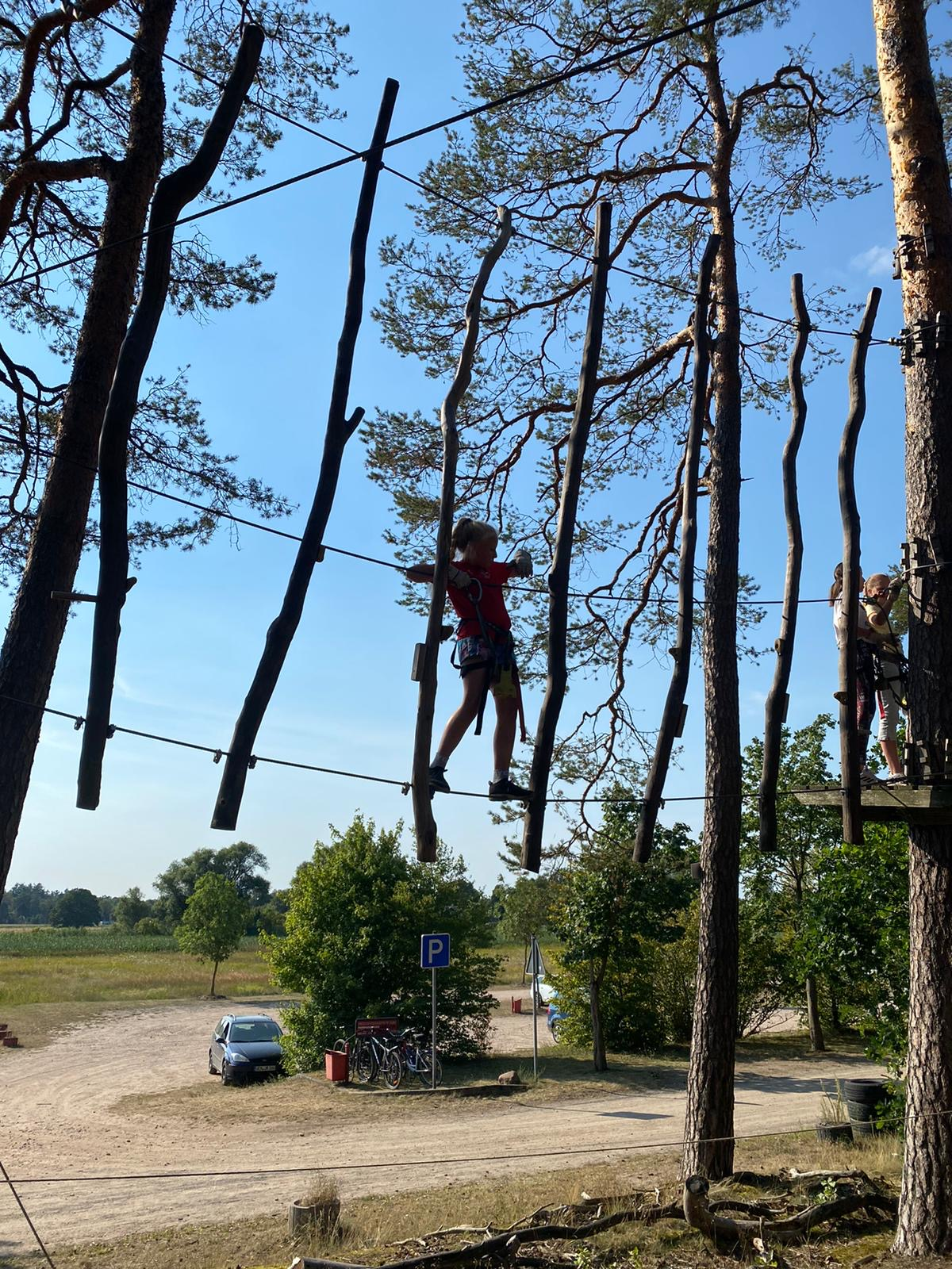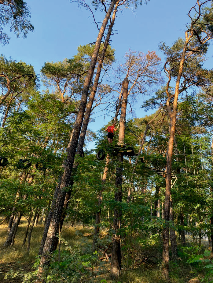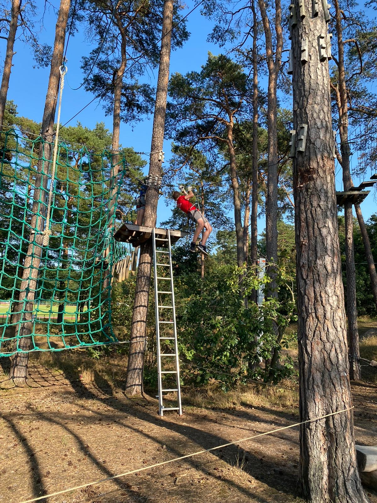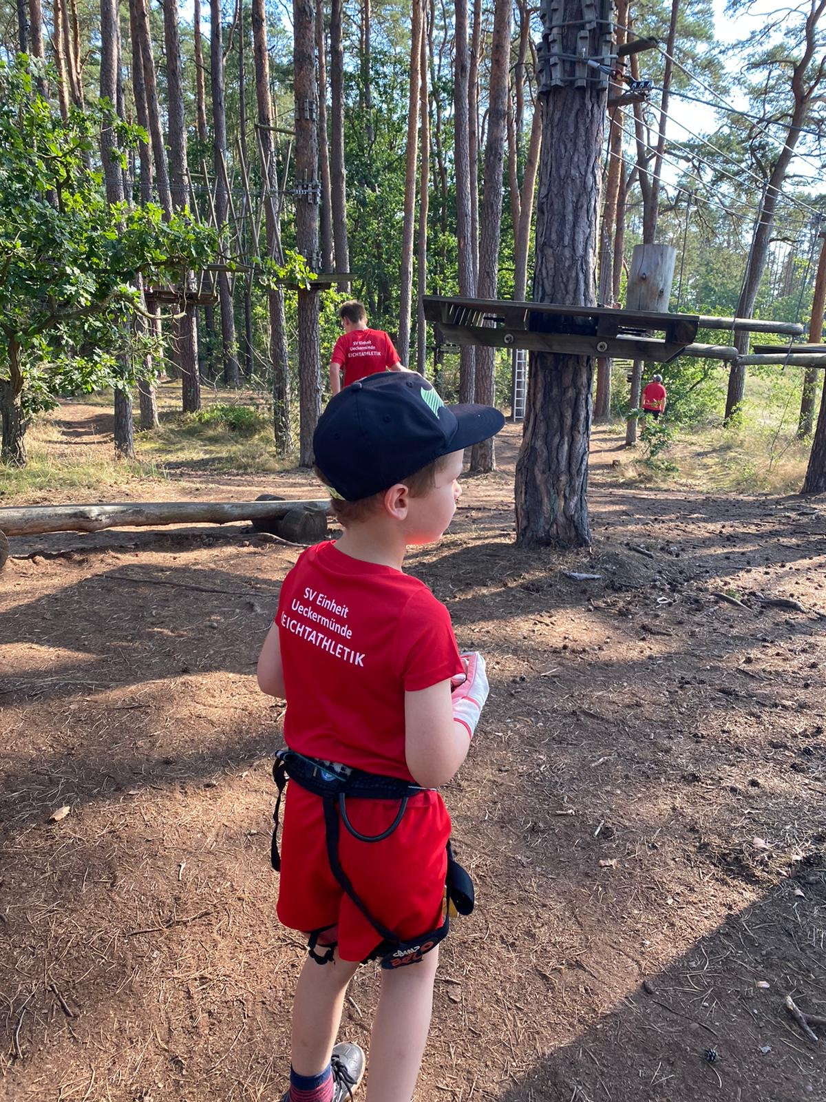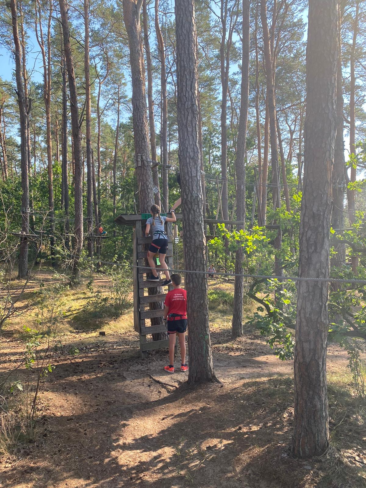 Ueckermünde. Der SV Einheit Ueckermünde besteht aus insgesamt neun Sportabteilungen. Dazu gehören u.a. Badminton, Basketball, Leichtathletik, Tischtennis und Volleyball. Einmal im Jahr lädt der Verein die Kinder und Jugendlichen aus allen Abteilungen gemeinsam in den Kletterwald ein. Dort können die Großen und Kleinen aus den verschiedenen Sportarten Mutproben bestehen und ihre Kräfte messen. In diesem Jahr fiel der Termin auf einen der heißesten Tage im August. Trotzdem trafen sich insgesamt 26 junge Sportler im Kletterwald Ueckermünde. Hoch in den Bäumen fuhren sie mit der Seilbahn und hangelten sich von Plattform zu Plattform. Nach drei Stunden beendete der ziemlich erschöpfte aber glückliche SV Einheit Nachwuchs seine Klettertour und dann half nur noch ein Sprung ins kühle Nass des Ueckermünder Haffs. Trotzdem wollen alle im nächsten Jahr gerne wieder dabei sein.