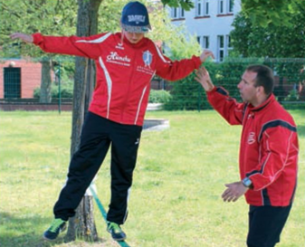 Ueckermünde. (SP) Damit hatte Brigitte Antusch wohl nicht gerechnet. Sie als 75jährige Frau auf dem Rücken eines Pferdes, geführt von ihrer Enkelin Nadine. Der Family Day of Sports machte es möglich, denn am Sonnabend, dem 17. Mai, stellten alle Sektionen von SV Einheit Uecker­münde im Ueckermünder Greifen­-Gymnasium ihre Arbeit vor und luden zum Mitmachen ein. Die Pferde von Trai­nerin Carmen Kaps waren dabei beson­ders begehrt, denn viele trauten sich das erste Mal auf die Vierbeiner. Nur der Chef des Sportvereins Dieter Salow ließ sich nicht aus der Reserve locken, freute sich aber über einen gelungenen Sport­tag zum 65. Geburtstag des Vereins, den er auch zum Danke sagen nutzte. Zahl­reiche Verantwortliche bekamen die Pla­kette des zweitgrößten Ueckermünder Sportvereins. Während draußen geritten, gelaufen oder an der Slackline balanciert wurde, flogen in der Halle große und kleine Bälle aus Gummi, Leder, Plastik oder mit Fe­dern, es wurde getanzt und asiatisch ge­kämpft. Eine bunte Mischung zum Mit­machen, von der zahlreiche Familien Gebrauch machten und mächtig ins Schwitzen kamen. Die Sportangebote des Vereins, Trainingszeiten und An­sprechpartner der Sektionen finden Sie übrigens im Internet unter www.sv-einheit-ueckermuende.eu.