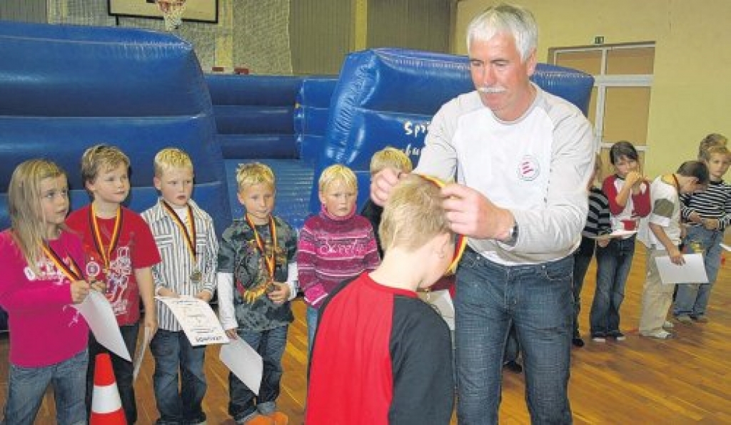 Ueckermünde. Anlässlich der Ueckermünder Sport- und Gesundheitswoche konnten sich die Kinder der Haff-Grundschule in der Haffring-Turnhalle gestern so richtig austoben. Belohnt wurden sie mit Medaillen und Urkunden, die ihnen Guido Pietzke vom SV Einheit Ueckermünde überreichte.