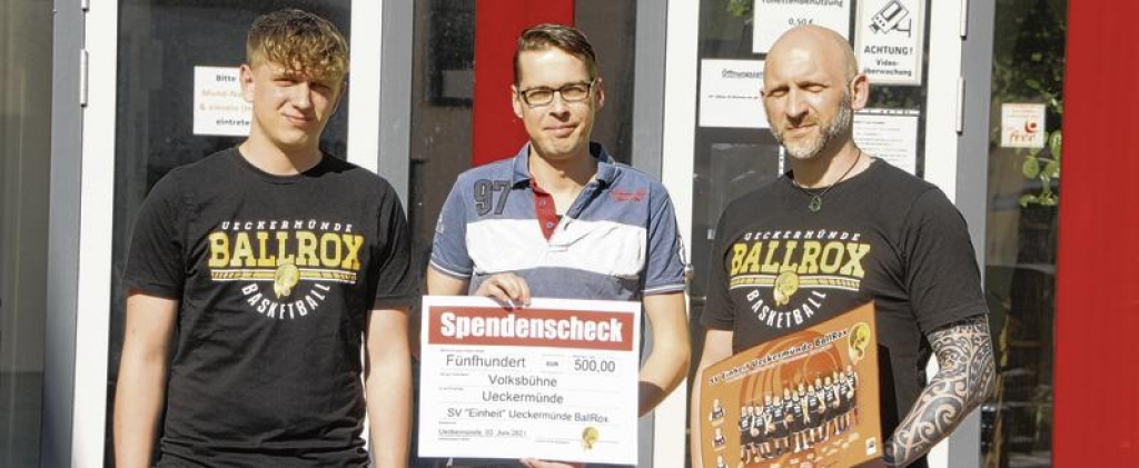 Damit das Kino diese schwere Zeit überleben kann, sammelten die Basketballer vom Haff nun Spenden ein. „Wir haben beschlossen, der Region in dieser harten Zeit etwas zurückzugeben“, erzählt Falko Ramm, Coach der „BallRox“-Truppe des SV Einheit, die in dieser Woche nach acht Monaten Pause wieder ins Training einsteigen konnte. „Weil wir alle gerne Filme schauen und die „Volksbühne“ zu den wenigen Kinos hier in der Region zählt, fiel unsere Wahl schnell darauf.“