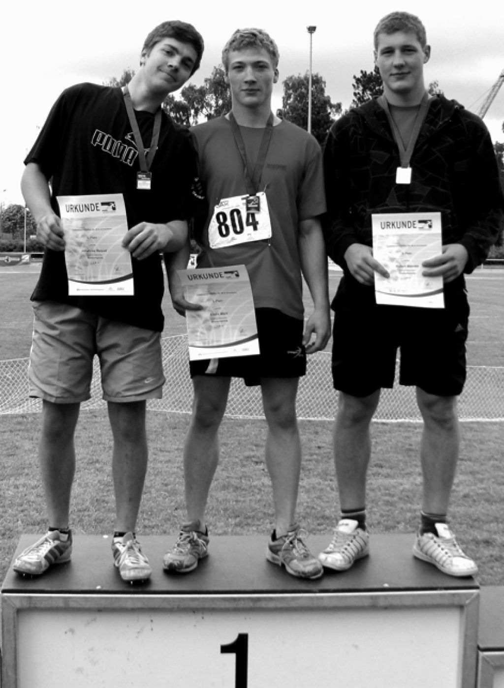 Topergebnisse für Leichtathleten bei Landesmeisterschaften Von links nach rechts: Johannes, André und Robert auf dem Siegerpodest