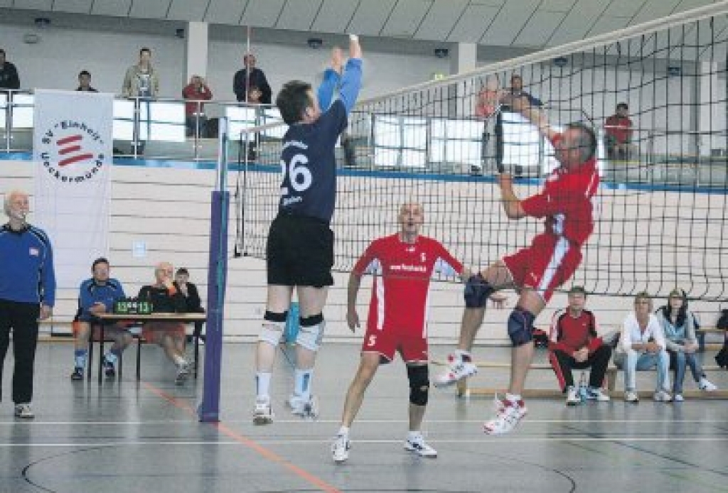 Ueckermünde. Der ganz große Erfolg ist den Senioren-Volleyballern des SV Einheit Ueckermünde zwar versagt geblieben, dennoch dürften die Männer um Mannschaftsleiter Dieter Salow zufrieden sein. Denn immerhin konnten sich die Haff-Volleyballer bei den Norddeutschen Meisterschaften in der Altersklasse Ü47 in der Sporthalle des Ueckermünder Greifen-Gymnasiums mit der Silbermedaille schmücken. Knackpunkt war das Auftaktspiel gegen den amtierenden Norddeutschen Meister VC Strande aus Schleswig-Holstein. „Wir haben zwar schwach angefangen, dann sah es aber ganz gut aus“, sagte Dieter Salow. Der erste Satz war über weite Strecken ausgeglichen; die Einheit-Senioren lagen in der Schlussphase sogar mit 23:21 vorn. Doch die Schleswig-Holsteiner drehten diesen Satz noch. Auch den zweiten Durchgang gestalteten die Haffstädter über weite Strecken ausgeglichen. Das bessere Ende hatten dann aber wieder die Volleyballer aus Strande für sich. Somit mussten die Ueckermünder die beiden nächsten Spiele gegen den VG Elmshorn und VFC Motor 96 Schwerin gewinnen, um wenigstens den Vizemeistertitel aus dem Vorjahr zu verteidigen. Mit diesem Druck konnten die Gastgeber dann sehr gut umgehen. Sowohl gegen VG Elmshorn als auch gegen den VFC Motor Schwerin setzten sich die Senioren-Volleyballer aus dem Uecker-Randow-Kreis jeweils mit 2:0 nach Sätzen durch. „Damit haben wir aber leider eine direkte Teilnahme an den Deutschen Meisterschaften zu Pfingsten in Fellbach verpasst“, sagte Dieter Salow. Nun muss Einheit zum Qualifikationsturnier der vier Regionalvizemeister (Nord, Nordost, Nordwest und West), das am 9. Mai in Bremen oder Hannover ausgetragen wird, um sich die Teilnahme an den Deutschen Titelkämpfen zu sichern. Dabei würde ein zweiter Platz genügen. „Es wird aber nicht leicht, da alle Vizemeister auf einem hohen Niveau spielen können“, sagte Dieter Salow.