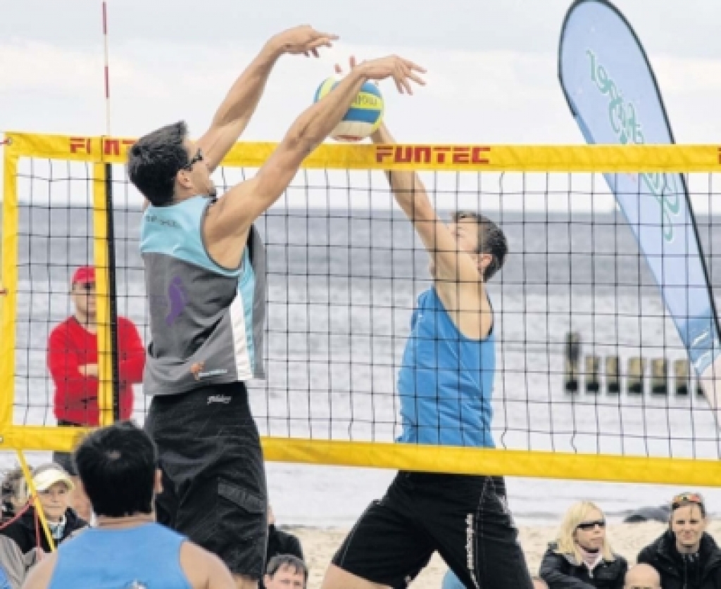 Ückeritz. Beachvolleyball vom Feisten boten 69 Männer und 46 Frauenteams den Zuschauern am Strand von Ostseebad Ückeritz. Beim 8. offenen Turnier der Bernsteinbäder ging es nicht nur um Pokale und Preisgeld, sondern auch um wichige Ranglistenpunkte. Entsprechend motiviert gingen die Aktiven zur Sache, obwohl sie zeitweise mit Regen und heftigem Wind zu kämpfen hatten. Nach den Vorrunden- und Semifinalspielen hatten sich wie schon in den Jahren zuvor, auch im Ückeritzer „Sandkasten“ die Favoriten durchgesetzt. Im Männer-Endspiel trafen mit Henry Glöckner/Axel Rübesam und Christian Grapenthin/ Andre Rübesam (alle Berlin), zwei Mannschaften aufeinander, die sich ein höchst spannendes und erstklassiges Match lieferten. Letztlich gewannen Glöckner/Rübesam nach vielen schönen Ballwechseln mit 21:18, 19:21, 15:12. „Es war wiederum sehr eng. Ich habe aber fest an den Sieg geglaubt“, meinte Henry Glöckner. Der 19-Jährige vom VCO Berlin vertritt in Kürze Deutschland in der U21 bei der Beach-WM in Kanada. Fast ebenso spannend verlief der Wettbewerb der Frauen. Dort setzten sich Swantje Basan (Hamburg)/Franziska Kühn (Rostock) gegen Hinze/Kottloff (beide Hamburg) knapp durch. Die Teams der Region konnten erwartungsgemäß im „Konzert der Großen“ nicht mithalten und landeten auf Mittelplätzen. Dagegen sprangen in der „Mumien“- Konkurrenz einige gute Platzierungen heraus. Sieger in der AK III wurden E. Kliewe/Preuschmann vor Henschel/Schulz (alle Einheit Ueckermünde) nach zwei hart umkämpften Sätzen, während sich Walczak/Kruk, sowie Müller (alle Seebad Ahlbeck)/Schürhoff (Greifswald) in der AK I bzw. II jeweils mit Silber schmücken konnten. Mit N. Kliewe/Rißmann landete ein weiteres Ueckermünder Senioren-Paar in der AK II auf einem fünften Rang. Trotz der widrigen Bedingungen brachten die Organisatoren das zweitägige Turnier sicher über die Runden. „Wir sind selbst erstaunt, wie gut alles geklappt hat“, freute sich Wettkampfleiter Robert Neidel vom Ahlbecker Veranstalter.