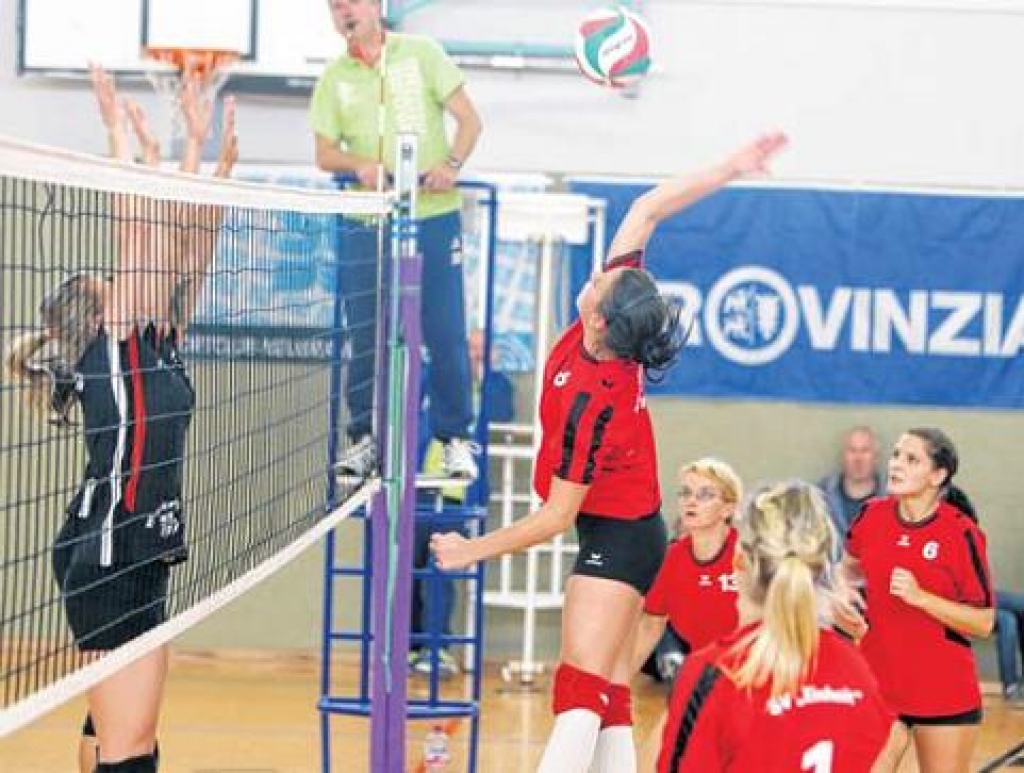 Einheit mit Paukenschlag Die Volleyball-Damen des SV Einheit Ueckermünde (rot) starteten mit zwei Siegen. FOTO: HEIKO BROSIN