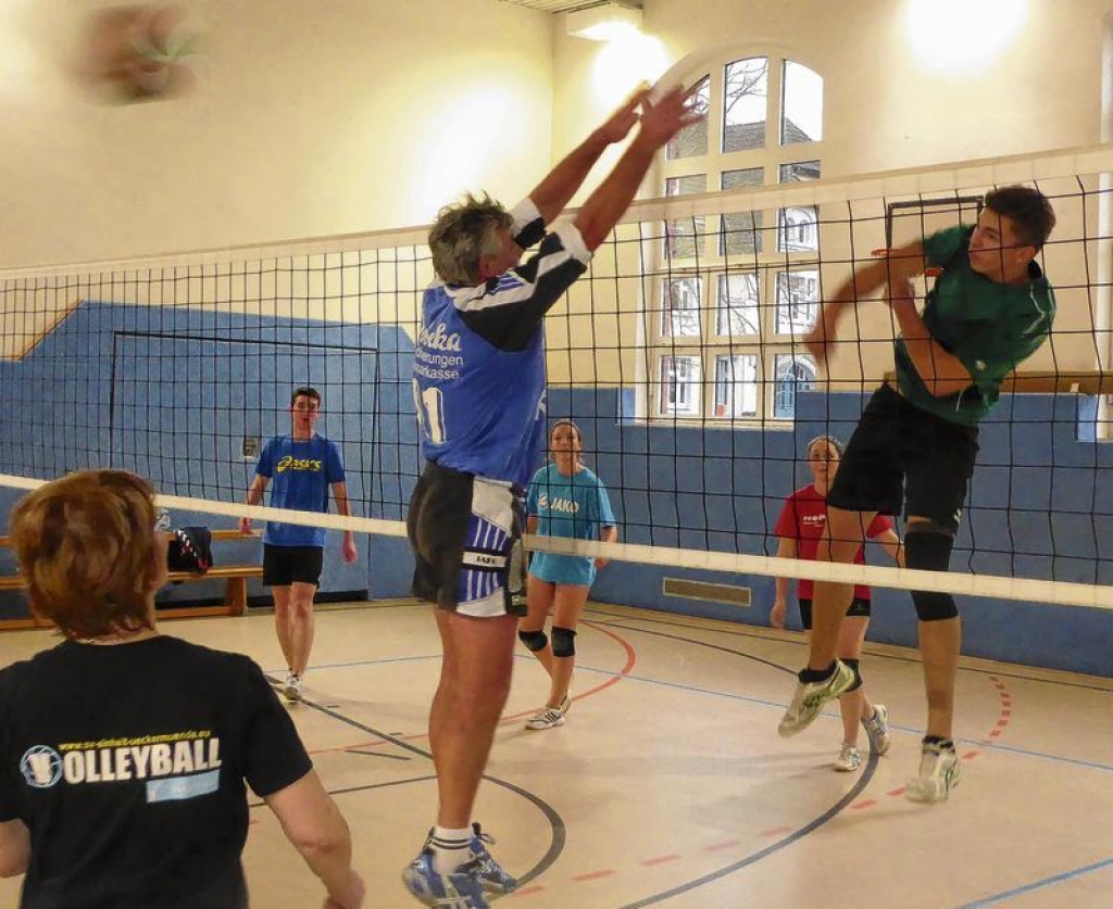 Bei der Premiere waren dann sieben Mannschaften mit insgesamt 28 Spielern in der Goethehalle dabei, die sich spannende Duelle lieferten: Frauen gegen Männer, Jung gegen Alt und Profis gegen Hobby-Volleyballer. Es wurde in zwei Staffeln mit insgesamt acht Begegnungen gespielt. Alle Beteiligten waren mit Freude und Spaß, aber auch mit Ehrgeiz am hohen Netz dabei.