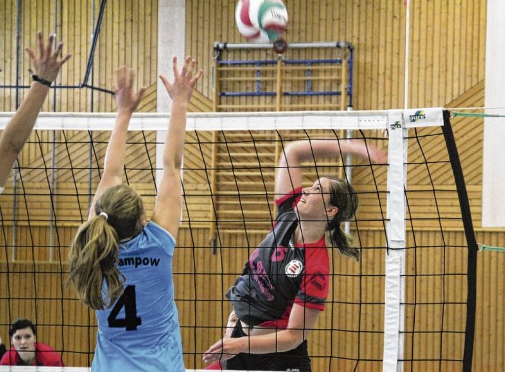 Punkten Ueckermündes Volleyball-Damen? Die Volleyballerinnen des SV Einheit Ueckermünde um Angelique Burmeister (rechts) sind am Sonntag gegen Rostock und Parchim II gefordert. Foto: Christian Johner