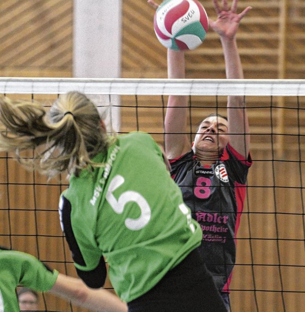Volleyball: Junges Team vor schwierigen Aufgaben Der SV Einheit Ueckermünde um Jennifer Achterberg (hier beim Blockversuch) fährt als klarer Außenseiter nach Rostock. Foto: Christian Johner