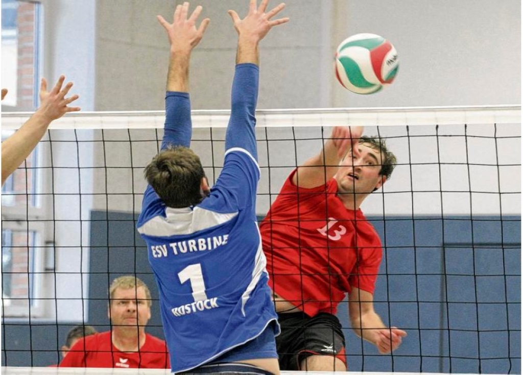 Ueckermünde. In der Goethehalle haben die Landesliga-Volleyballer vom SV Einheit Ueckermünde am fünften Doppelspieltag dieser Saison den vierten Sieg eingefahren. Der SV Einheit bezwang in einer spannenden Partie den ESV Turbine Rostock mit 3:2 (25:23, 25:20, 26:28, 20:25, 15:9) und holte somit zwei Punkte. Die Rostocker, die bis zu diesem Spieltag die Tabellenführung der Landesliga innehatten, waren personell arg geschwächt und daher mit einer Rumpftruppe ans Haff gereist. „Nichtsdestotrotz war das der Tabellenführer. Gegen den muss man erst einmal gewinnen“, betonte Einheit-Kapitän Roland Florin.
